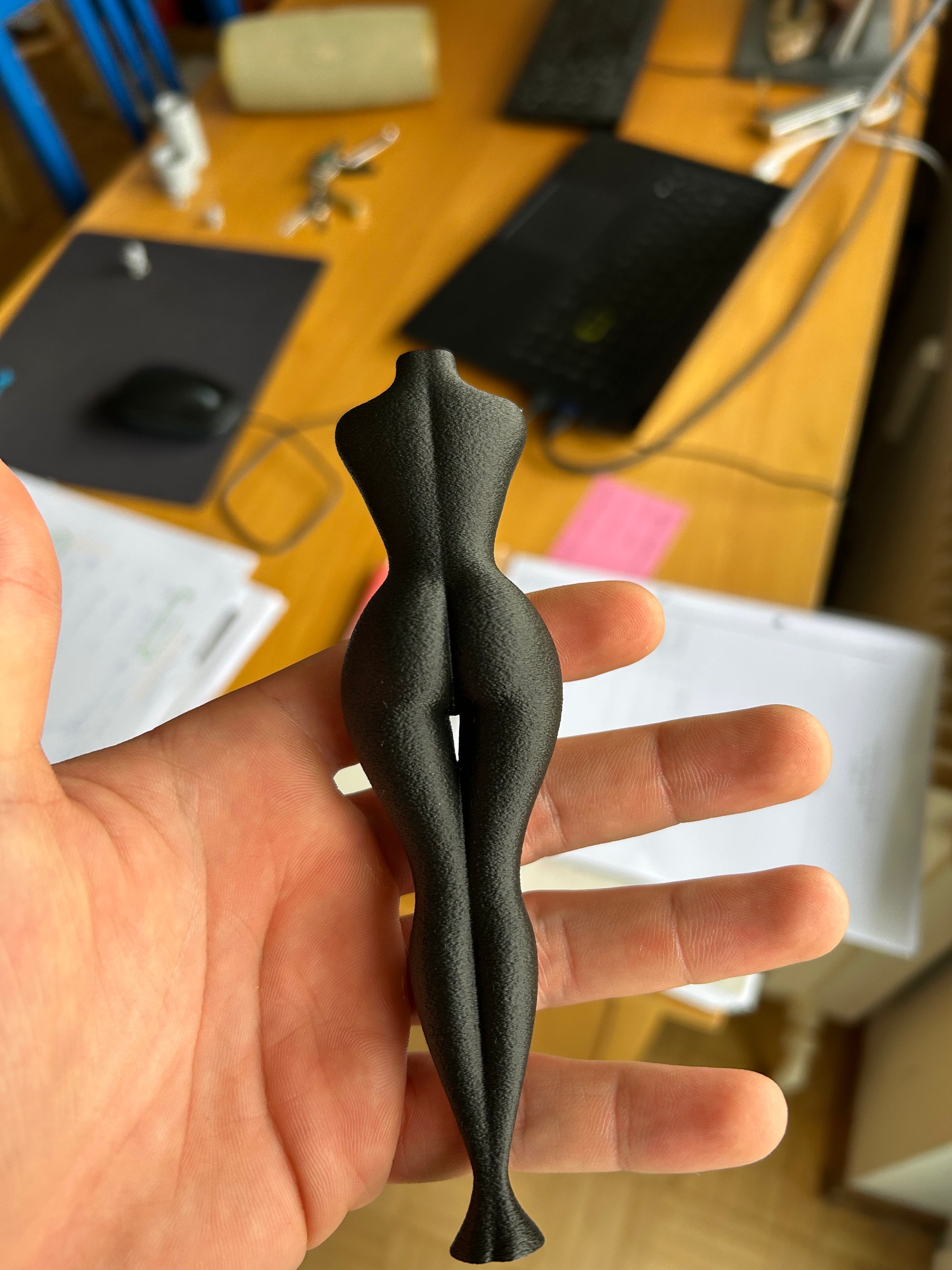Minimalistische 3D-gedruckte Skulptur, die Eleganz der weiblichen Form in fließenden Linien einfängt. Gefertigt aus seidenmattem, nachhaltigem Polymer - ein modernes Statement für Stil und Ästhetik